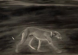 En aquel momento la conocí yo, y desde el principio sentí deseos de fotografiarla, motivado por la expresión de su mirada y la tristeza que me produjo el contraste de la escayola en la pata de un galgo. Dos meses después y curada de sus lesiones, Adela contactó con Milagros, dueña de una pequeña casa en el campo, donde no existía ninguna otra vivienda habitada a excepción de una vaquería próxima.