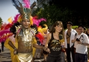 Sin embargo a esa hora, es cuando l@s fotografiad@s mejor lucen sus cuerpos, irradiando ilusión por brillar en todo el recorrido de la manifestación. Para eso llevan muchos días, pensando como sorprender este año, diseñando su atuendo y accesorios y preparando su particular coreografía, que repetirán machaconamente durante todo el desfile.